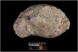 | Description / विवरण | A partially broken specimen of hammerstone made of quartz, Most probably round in shape, It has rough and battered surface, |