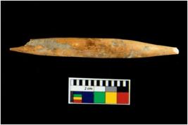 | Description / विवरण | A specimen of bone point with conical body and circular cross section. It is creamish in colour. |