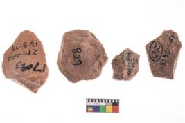 | Description / विवरण | A specimen of flake tool with prominent flaking marks. It made up of a short flakes with sides trimmed. It is rectangular in shaped |