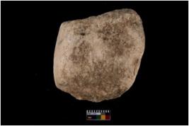 | Description / विवरण | A partially broken specimen of a muller probably from its middle portion, Its made of quartz, It has very rough surface except that of bottom which is very smooth and curved probably due to its use for grinding. |