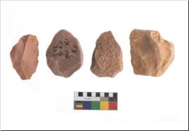 | Description / विवरण | Specimen of flake tools with prominent flaking marks. It made up of a short flakes with sides trimmed. |