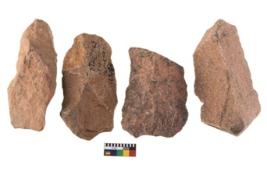 | Description / विवरण | Specimen of flake tool with prominent flaking marks. They are made up of a short flakes with sides trimmed. |