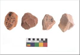 | Description / विवरण | Specimen of flake tools with prominent flaking marks. It made up of a short flakes with sides trimmed. |