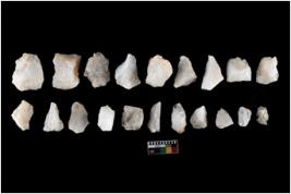 | Description / विवरण | There are n-20 of intact flake cores made up of Quartz. Some of them have bulge of percussion and some are flat flakes. |