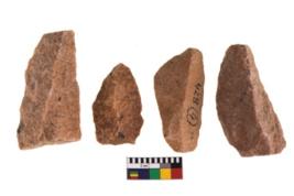 | Description / विवरण | Specimen of flake tool with prominent flaking marks. They are made up of a short flakes with sides trimmed. |