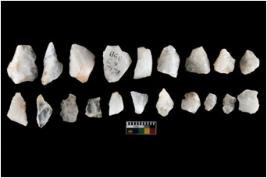 | Description / विवरण | There are n-20 of intact flake cores made up of Quartz. Some of them have bulge of percussion and some are flat flakes. |