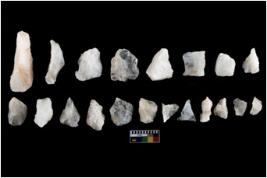| Description / विवरण | There are n-20 of intact flake cores made up of Quartz. Some of them have bulge of percussion and some are flat flakes. |