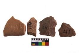 | Description / विवरण | Specimen of flake tool with prominent flaking marks. They are made up of a short flakes with sides trimmed. |