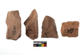| Description / विवरण | Specimen of flake tool with prominent flaking marks. They are made up of a short flakes with sides trimmed. |