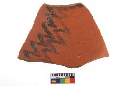 | Description / विवरण | Specimen of potsherd with decorative black pigment. zigzag pattern |