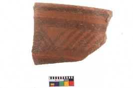 | Description / विवरण | Specimen of potsherd with decorative geometric Linear Pattern painting, Type Black on Red Ware . |