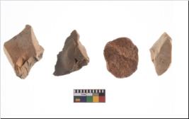 | Description / विवरण | Four utilised worked cores with sharp edges. Flakes removed from almost all the sides. Some are tapering at one end. |