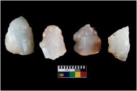 | Description / विवरण | Four cores; most of them are uneven with flakes removed from almost all the sides. |