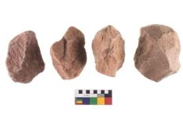 | Description / विवरण | Specimen of flake tools with prominent flaking marks. It made up of a short flakes with sides trimmed. |