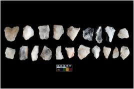 | Description / विवरण | There are n-20 of intact flake cores made up of Quartz. Some of them have bulge of percussion and some are flat flakes. |