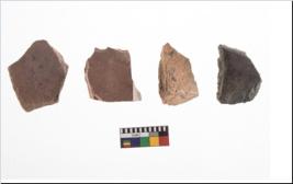 | Description / विवरण | Four utilised worked cores with sharp edges. Flakes removed from almost all the sides. Some are tapering at one end. |