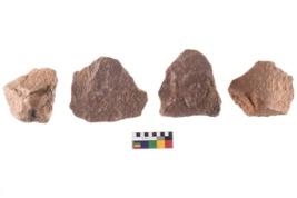 | Description / विवरण | Specimen of flake tools with prominent flaking marks. It made up of a short flakes with sides trimmed. |