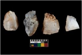 | Description / विवरण | Four cores; most of them are uneven with flakes removed from almost all the sides. |