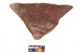 | Description / विवरण | Specimen of potsherd with decorative geometric Linear Pattern painting, Type Black on Red Ware . |