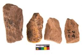 | Description / विवरण | Specimen of flake tool with prominent flaking marks. They are made up of a short flakes with sides trimmed. |