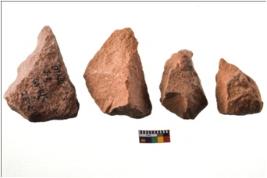 | Description / विवरण | Four worked utilised flakes. Most of them are uneven with sharp edges. |