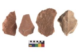 | Description / विवरण | Specimen of flake tools with prominent flaking marks. It made up of a short flakes with sides trimmed. |