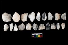 | Description / विवरण | There are n-20 of intact flake cores made up of Quartz. Some of them have bulge of percussion and some are flat flakes. |