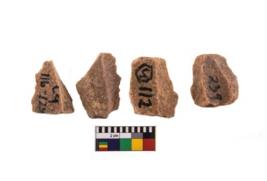 | Description / विवरण | Specimen of flake tool with prominent flaking marks. |