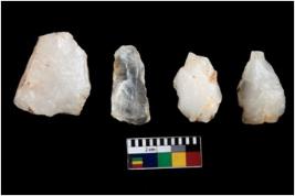 | Description / विवरण | Four cores; most of them are uneven with flakes removed from almost all the sides. |