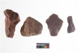 | Description / विवरण | A Sub rectangular flake with wavy thick distal end and broken functional top. It reined pebbly cortex on one side and irregular thin edge on the other |