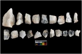 | Description / विवरण | There are n-20 of intact flake cores made up of Quartz. Some of them have bulge of percussion and some are flat flakes. |