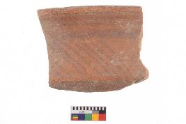 | Description / विवरण | Specimen of potsherd with decorative geometric Linear Pattern painting, Type Black on Red Ware . |