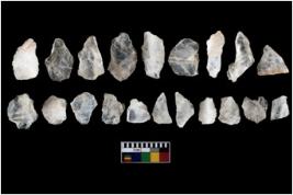 | Description / विवरण | There are n-20 of intact flake cores made up of Quartz. Some of them have bulge of percussion and some are flat flakes. |