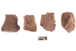 | Description / विवरण | Specimen of flake tools with prominent flaking marks. |