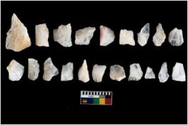 | Description / विवरण | There are n-20 of intact flake cores made up of Quartz. Some of them have bulge of percussion and some are flat flakes. |