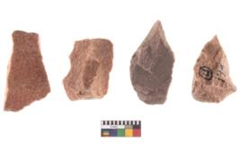 | Description / विवरण | Specimen of flake tools with prominent flaking marks. |