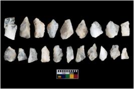 | Description / विवरण | There are n-20 of intact flake cores made up of Quartz. Some of them have bulge of percussion and some are flat flakes. |