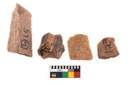 | Description / विवरण | Specimen of flake tool with prominent flaking marks. |