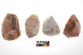 | Description / विवरण | There are n-4 of utilized flake cores. There are multidirectional irregular dominant scar pattern on both dorsal and ventral face of the cores. Some of them bulge of percussion and some are flat flake cores. |