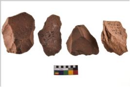 | Description / विवरण | Four worked utilised flakes. Most of them are uneven with sharp edges. |