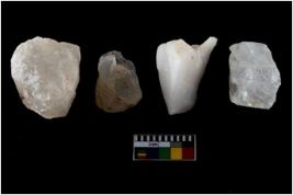 | Description / विवरण | Four utilised worked cores with sharp edges. Flakes removed from almost all the sides. Some are tapering at one end. |