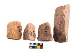 | Description / विवरण | Specimen of flake tool with prominent flaking marks. |