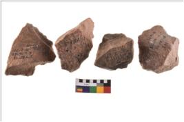 | Description / विवरण | Four worked utilised flakes. Most of them are uneven with sharp edges. |