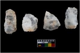 | Description / विवरण | A specimen of a fluted core having several broad fluted marks indicating the detached blades from it |