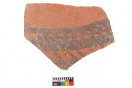 | Description / विवरण | Specimen of potsherd with decorative geometric Linear Pattern painting, Type Black on Red Ware . |