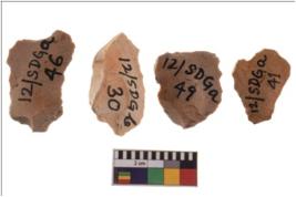 | Description / विवरण | Four flakes; most of them are tapering at one end with few having sharp edges. |