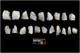 | Description / विवरण | There are n-20 of intact flake cores made up of Quartz. Some of them have bulge of percussion and some are flat flakes. |