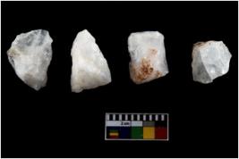 | Description / विवरण | Four utilised worked cores with sharp edges. Flakes removed from almost all the sides. Some are tapering at one end. |