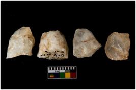| Description / विवरण | There are n-4 of cores. All of them are intact fully fluted cores without any trace of crested ridge flakes made up of Quartz. |