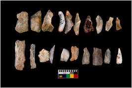 | Description / विवरण | Specimen of flake tool with prominent flaking marks. It made up of a short flakes with sides trimmed. |